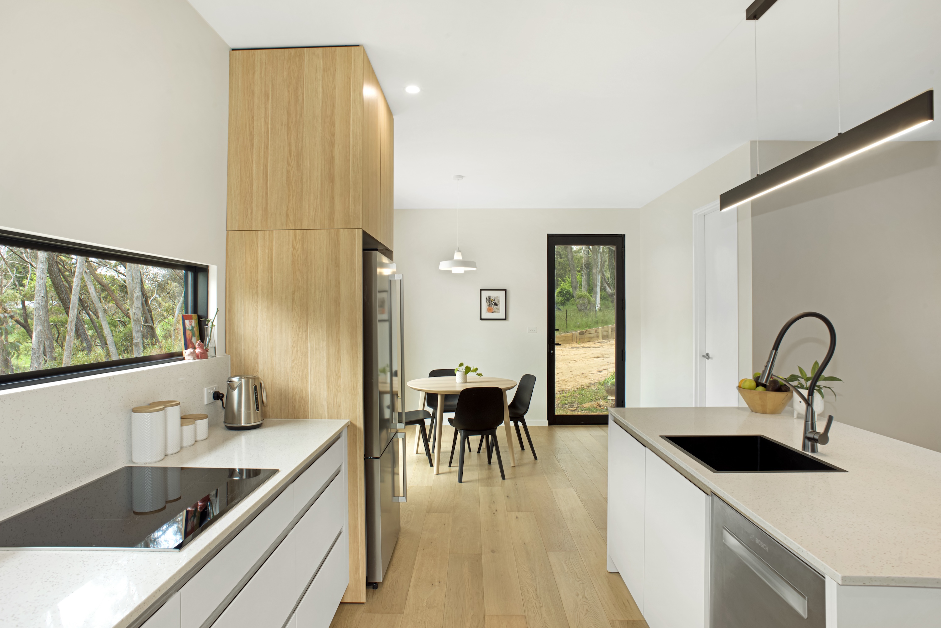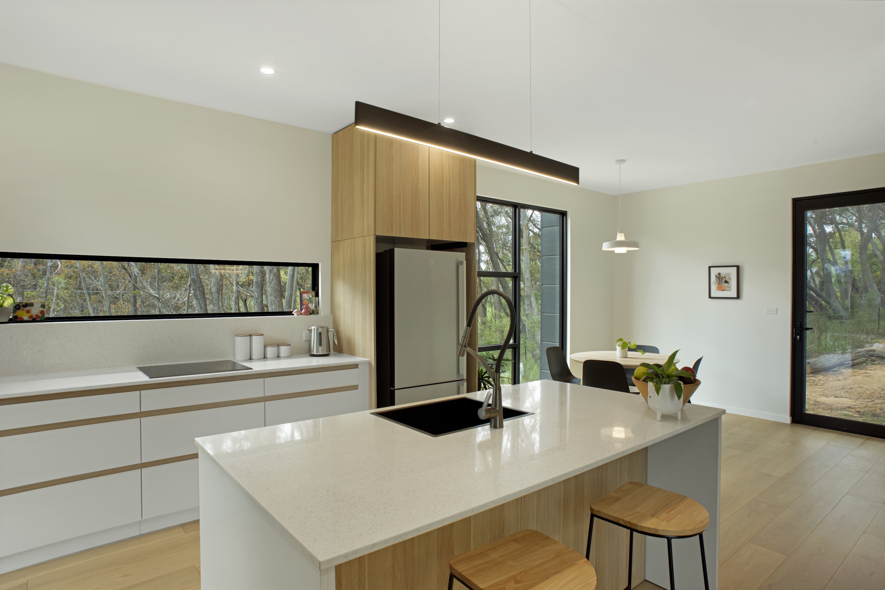 We built this beautiful contemporary family home back in 2021. Built amongst tall eucalypts in a quiet cul-de-sac in Blackheath, this house attracted a BAL_FZ rating to most elevations, with some achieving BAL-40. Despite this, we managed to create a sleek modern home with minimalist finishes and plenty of natural light. This house features double glazed aluminium windows and various James Hardie cladding installed to flame zone requirements.