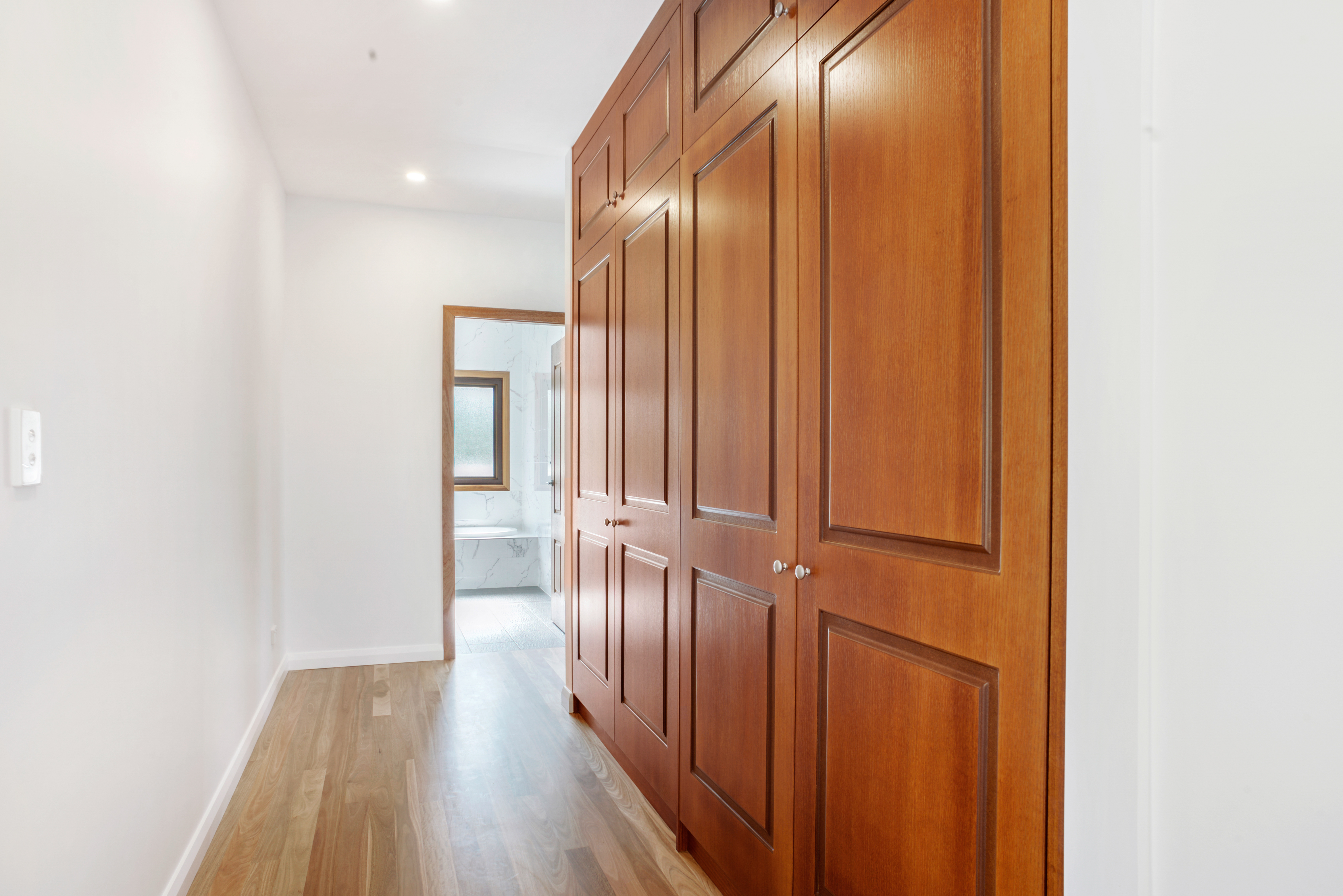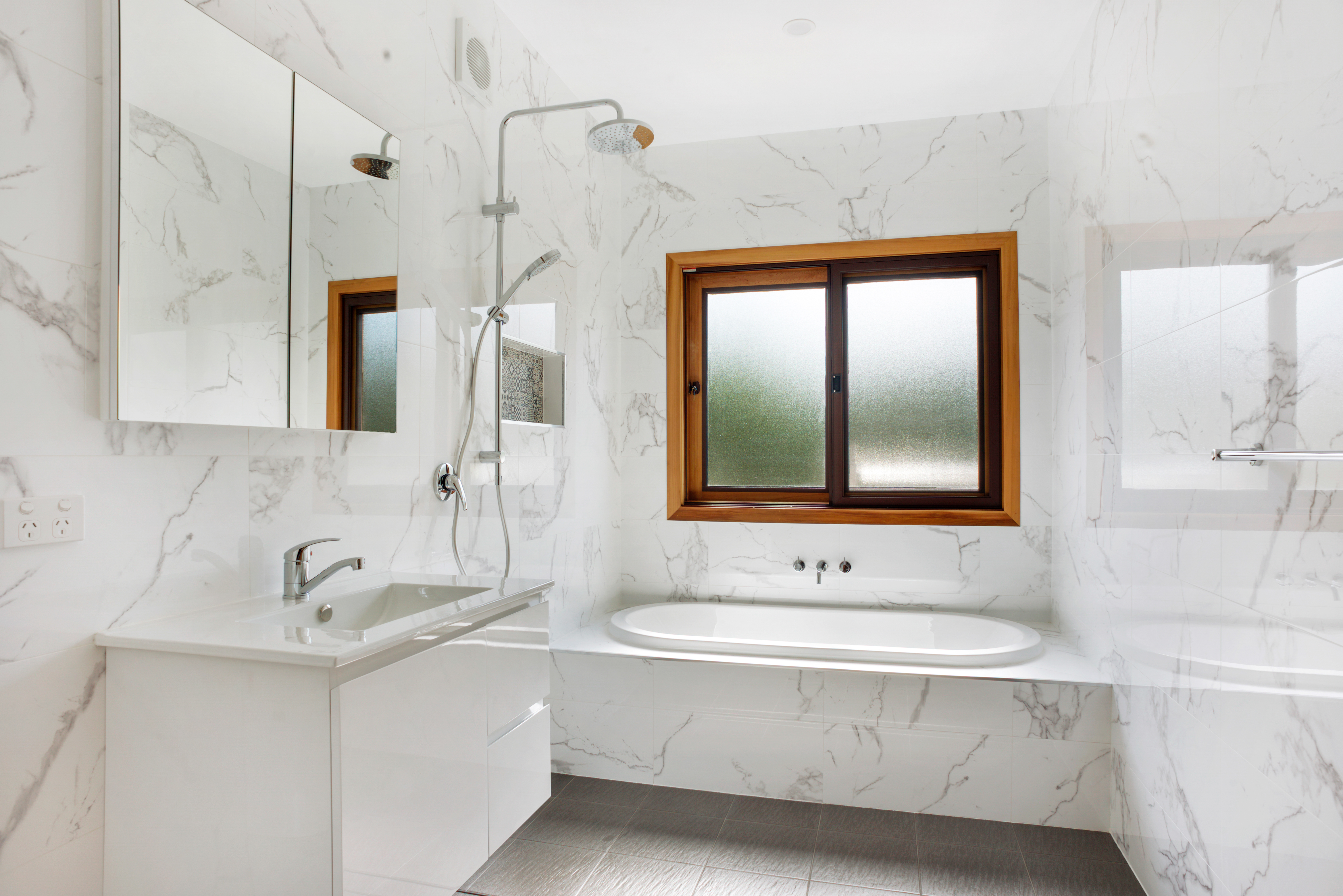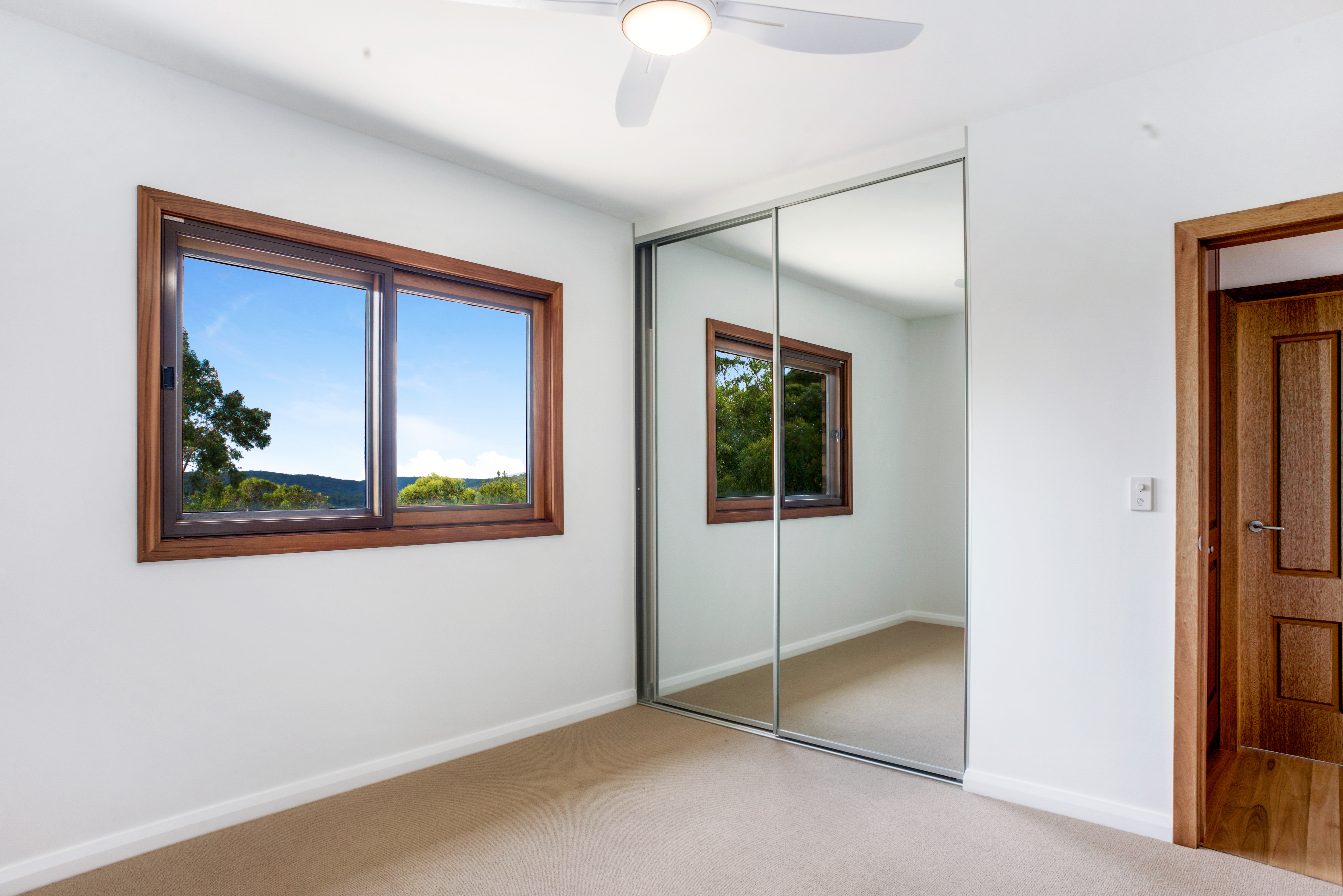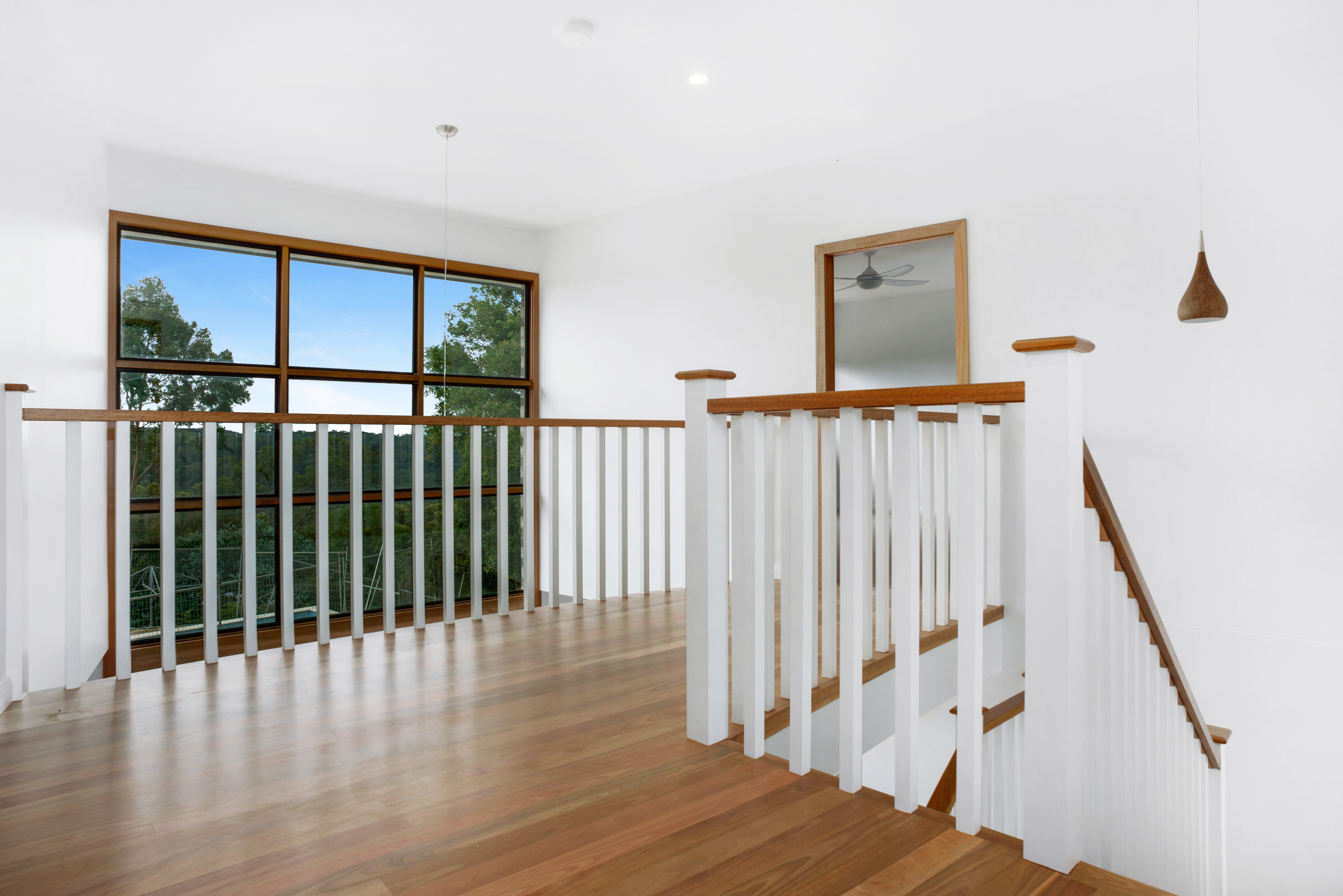 This modern, brick home was constructed in a BAL-40 zone on a sloping block. Split levels and retaining walls allowed us to create a large open living area on the ground floor. Bringing in huge amounts of natural light in the large 6 metre high atrium. This building incorporated a curved wall and different angled wings to make the most of the natural light and add some creative shape to this home